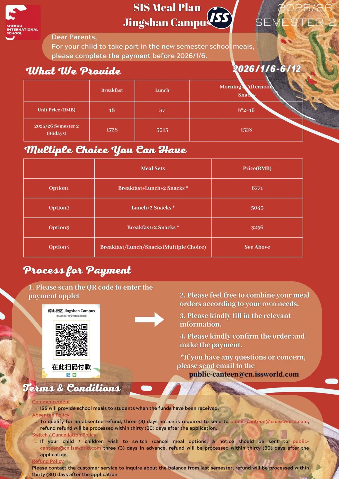 Jingshan Campus (Early Primary) Meal Plan -lSS World